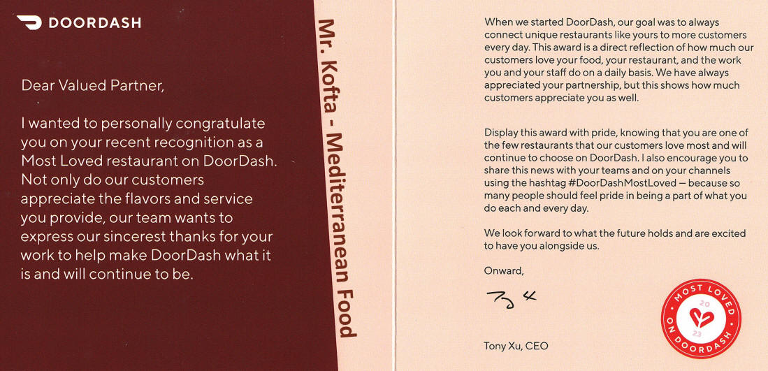 | #DoorDashMostLoved - Mr. Kofta - Mediterranean Food May 2024 | ||