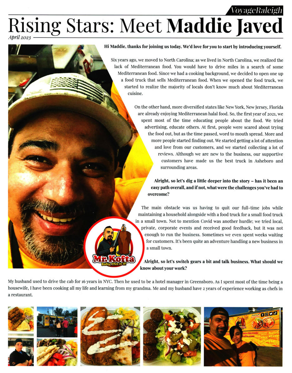 | Orignal article link to VoyageRaleigh magazine "Rising Stars: Meet Maddie Javed" | ||