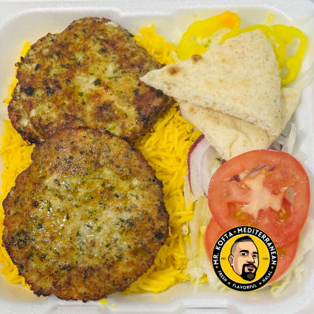 plate comes with chicken, lamb & 2 Falafels served with fresh long grain